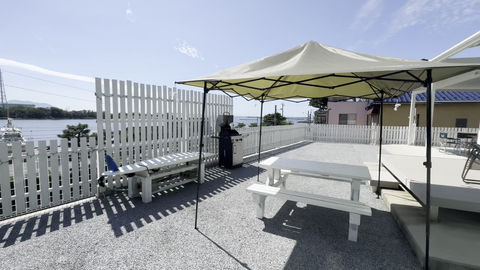 海側に、ウッドデッキや